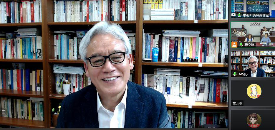 2021年6月11日,应香蕉视频 东北亚研究中心、香蕉视频 、香蕉视频 共同邀请,韩国庆南大学极东问题研究所李相万教授以“第三只眼看中朝关系”为主题作了线上学术报告,香蕉视频 、香蕉视频 院长吴昊出席本次论坛并致辞。吴昊院长表示,这是香蕉视频 成立以后举办的首次高端学术讲座,有幸请到李相万教授作第一次报告,希望同学们能够充分交流、有所收获。本次讲座由香蕉视频 朝鲜韩国研究所所长张慧智教授主持。