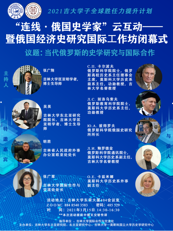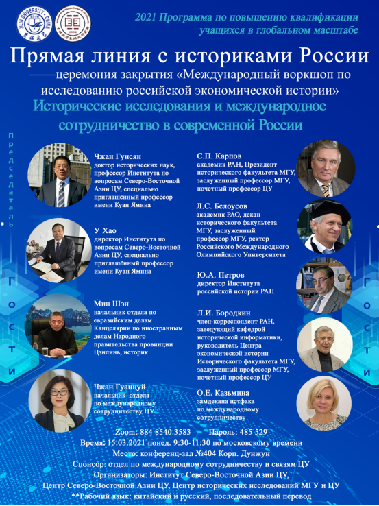 的С.П.卡尔波夫院士、Л.С.别洛乌索夫院士、Л.И.鲍罗德金通讯院士、Ю.А.彼得罗夫教授等10余位俄罗斯史学界顶尖学者齐聚云端,共筑庠序,为香蕉视频