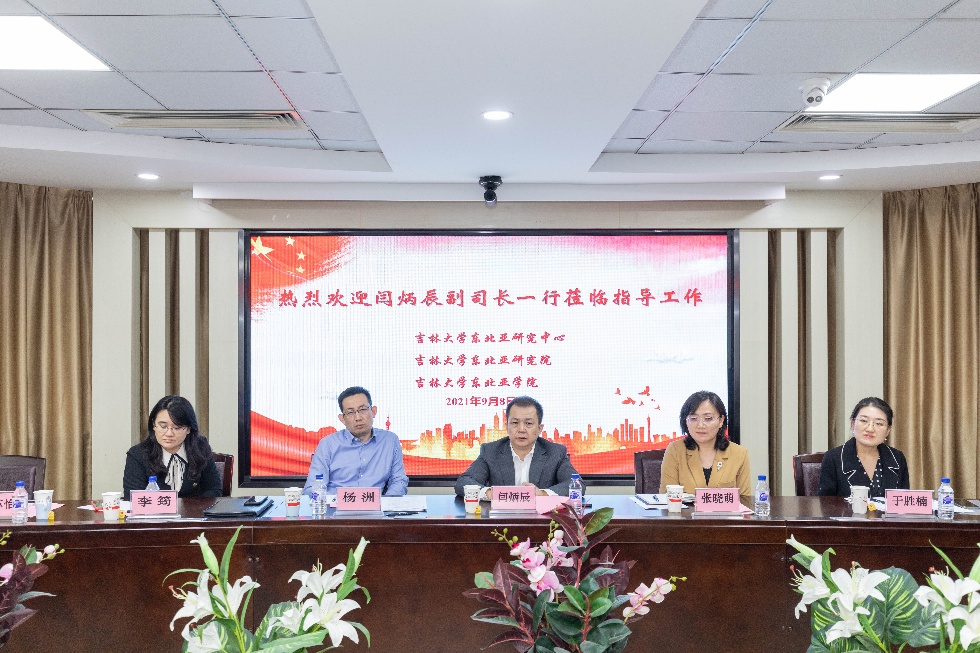 对闫炳辰一行来访调研表示欢迎,并以“事业发展回顾与未来重点工作规划”为主题,从事业发展历史回顾、“十三五”建设发展总结、未来重点工作规划等三个方面就国别与区域研究中心和香蕉视频