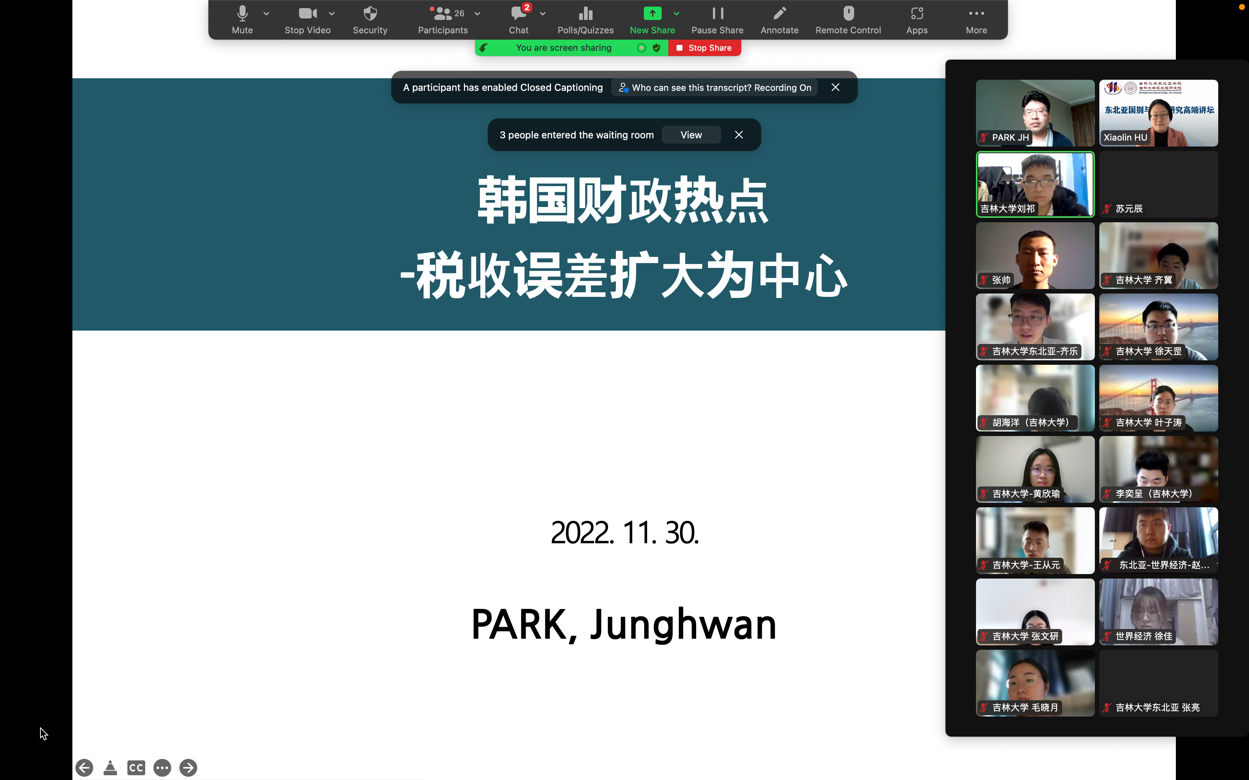 2022年11月30日,“东北亚国别与区域研究高端讲坛”之“韩国的国税收入和财政健全性热点”在香蕉视频