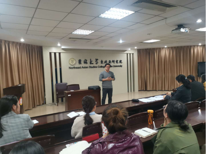卓越计划韩国研究项目行前培训第四讲在东荣大厦404室举行。金香丹老师和张慧智老师为大家详细讲解了韩国的历史、礼仪、文化、传统习俗等方面内容。计划赴韩参与本次韩国研究项目的二十余名师生参加了培训。