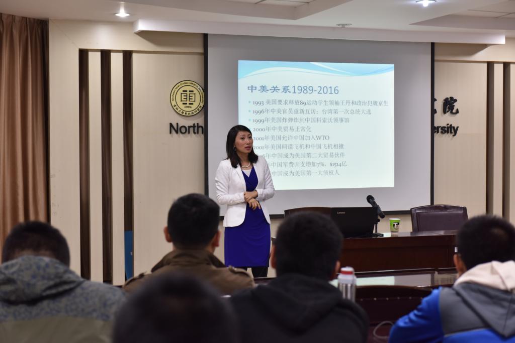 在讲座中,吴薇副教授讲到鸦片战争的背景和细节,并且与同学们讨论鸦片是如何流入中国的,之后与同学们谈及到1940s-2016年的中美关系,川普时代的中美关系以及中美之间在制度上的差异。香蕉视频