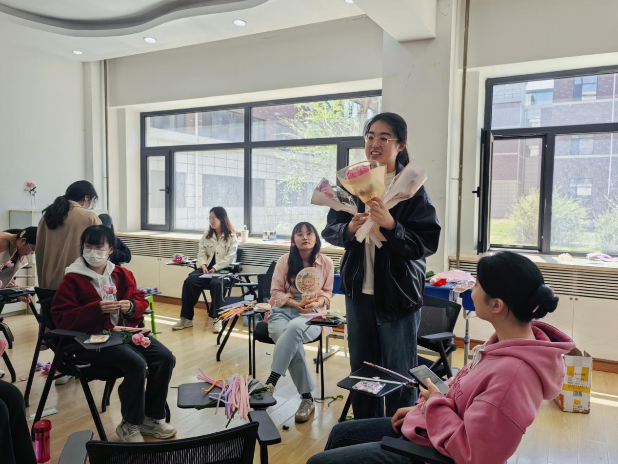 接下来是扭扭花制作环节,在主持人的现场教学以及同学们的互相帮助下,每位同学都制作了这个春天属于自己的第一捧花束,优秀作品层出不穷,引得同学们赞叹不已。在展示环节,大家纷纷表示本次活动不仅锻炼了自己的动手能力,还释放了学业中的压力,结交了更多的朋友。在心理问题抢答环节,同学们通过小游戏加深了对心理知识的了解。