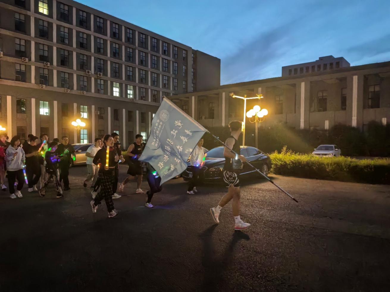 活动首日,负责人首先强调了夜跑的安全事项,随着领跑同学扛着院旗出发,为期五天的荧光夜跑活动正式开始。从匡亚明楼到宋治平体育馆,同学们佩戴荧光手环,挥舞荧光棒,用脚步踏出青春印记,在校园尽情挥洒汗水。