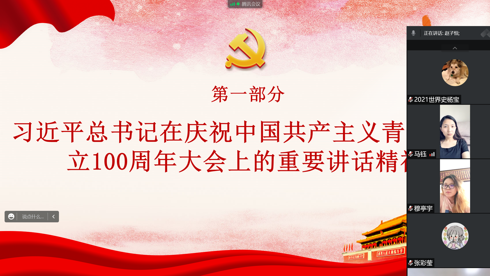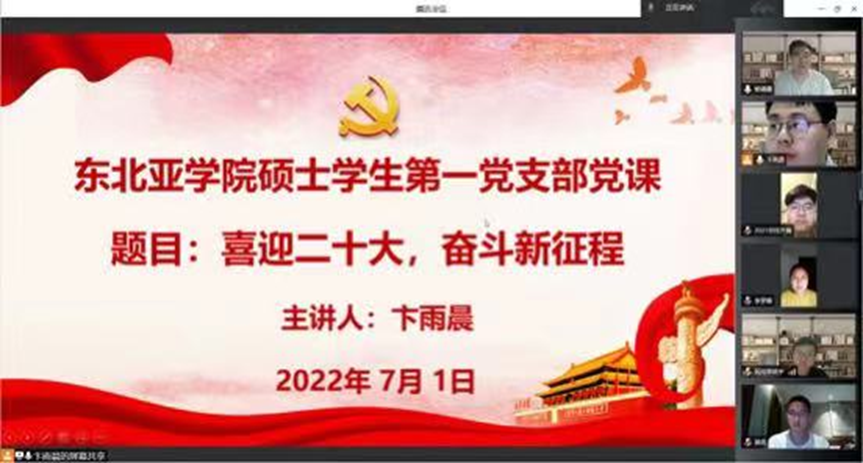 硕士学生第一党支部书记卞雨晨以“回顾光辉史,喜迎二十大,启航新征程”为题讲党课,国际政治研究所硕士学生党支部书记吕博尧以“喜迎二十大,砥砺再前行”为题讲党课,与支部党员一起回顾了中国共产党的光辉历史。支部全体党员一致表示,青年兴则国家兴,青年强则国家强,我们要立大志、勇担当、勤奋斗、长才干,不负时代使命,用理想之光照亮奋斗之路,用信仰之力开创美好未来。