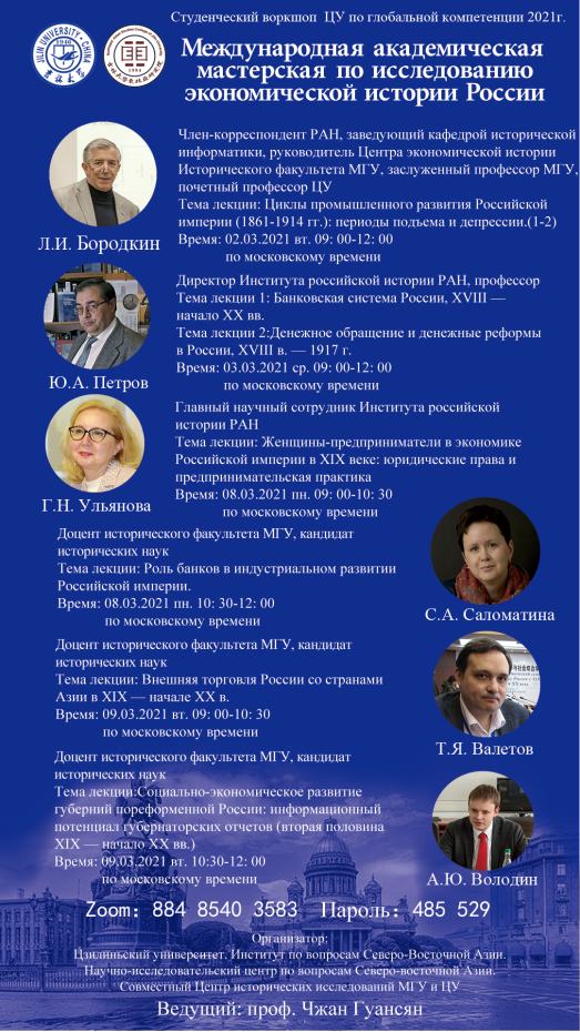 俄国史研究所的8位学者分别就俄国工业、银行、税收、货币、对外贸易、企业家和地方经济状况等课题进行专题授课。