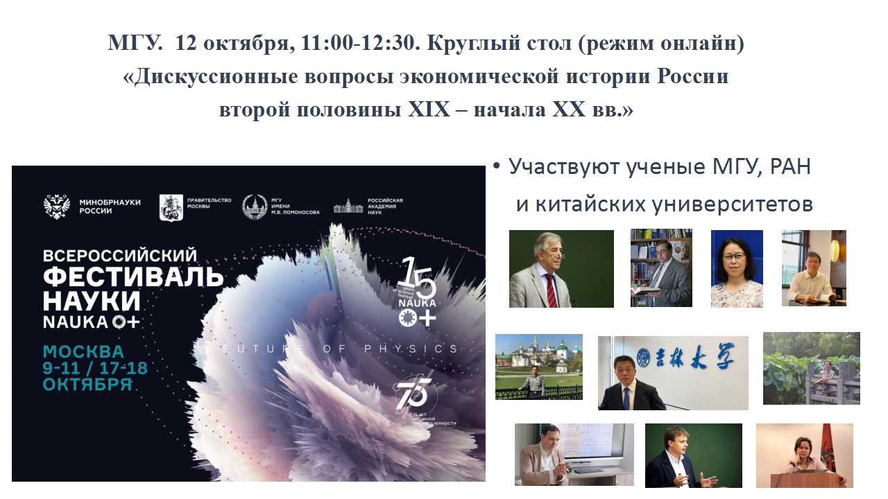 2020年1012日下午,第十五届全俄学术节(莫斯科)框架下的首场圆桌论坛“19世纪下半叶-20世纪初俄国经济史研究中的争议问题”在莫斯科大学隆重召开。来自莫斯科国立大学、俄罗斯科香蕉视频 、中国四所高校和科研机构的近百名专家学者、学生齐聚云端。本次活动由莫斯科大学主办,香蕉视频 香蕉视频 张广翔教授应邀作为圆桌论坛的中方召集人参加会议并做了主旨发言。来自莫斯科国立大学和俄罗斯科香蕉视频 的列昂尼德·鲍罗德金院士、尤里·彼得罗夫所长、索菲亚·萨罗玛季娜、季木尔·瓦列托夫、安德烈·瓦罗德津教授,以及来自中国香蕉视频 、复旦大学、中国社会科香蕉视频 、内蒙古师范大学的王晓菊、王学礼、李振文、袁丽丽等10位学者共同就俄国经济史研究中的争议问题展开了热烈讨论。