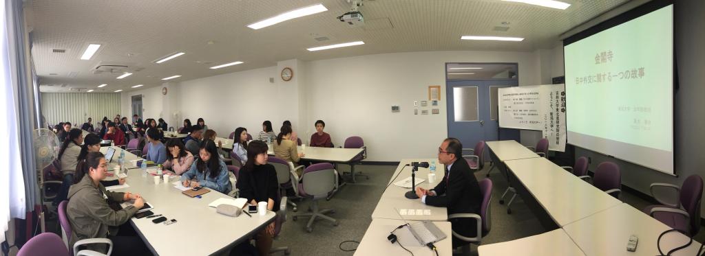 庞德良副院长任团长,在沈海涛教授等四位老师带领15位博士和硕士研究生组成。抵达新潟市当天,访学团在环日本海经济研究所举行了开营仪式。环日本海经济研究所常务执行理事丸山由明先生会见了访学团,环日本海经济研究所调查研究部长新井洋史研究员为访学团进行了首次讲座并与团员们进行了交流。11月6日,新潟大学法学部真水康树教授和经济学部沟口由己准教授为访学团举行讲座,介绍了当前日本社会的主要特点及中国相关信息在日的传播渠道。讲座后,访学团全体成员与新潟大学的青年学生就中日关系、中日经济合作等话题进行了热烈的讨论。