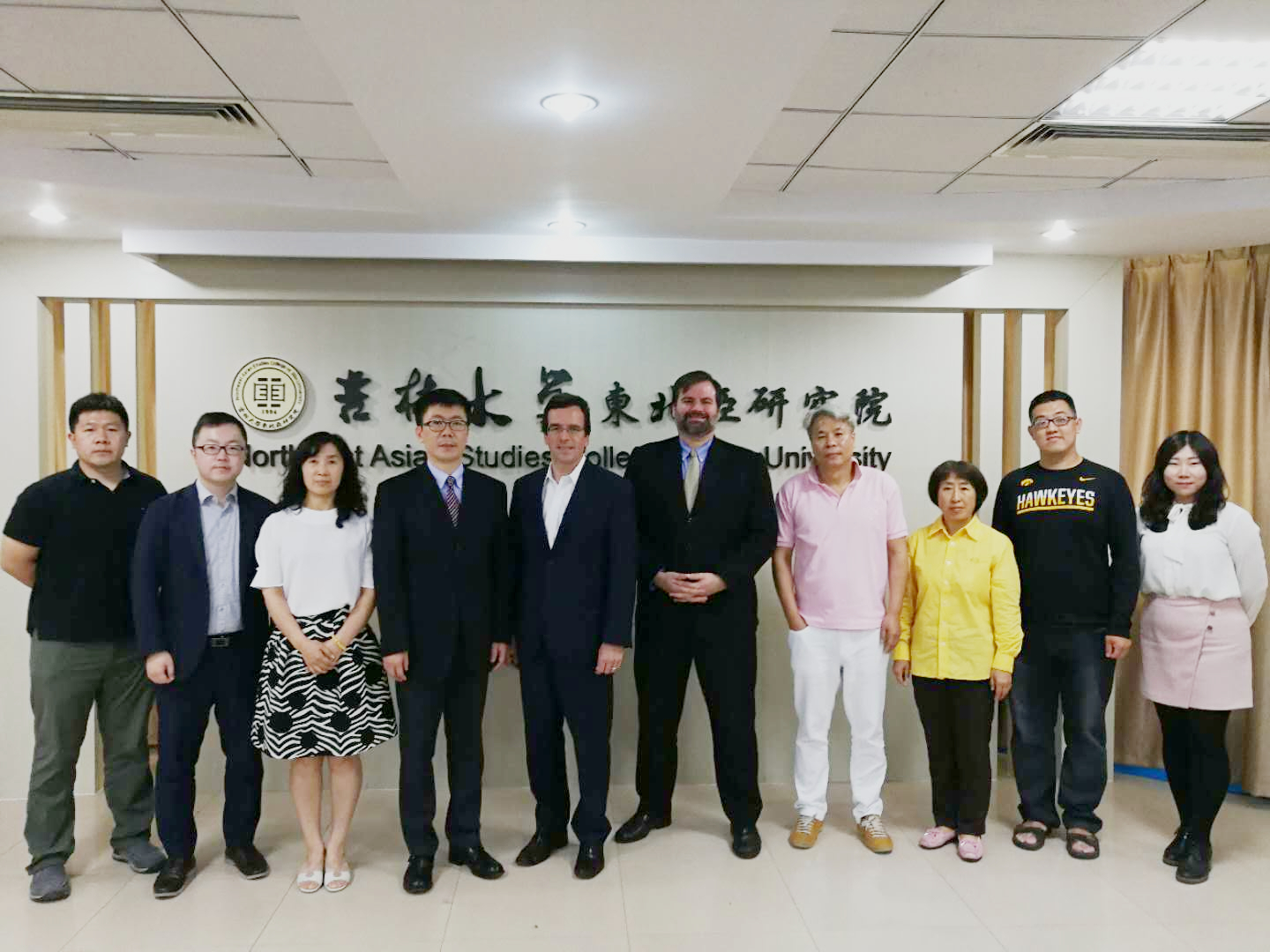 部分教师进行座谈。王彦军副院长主持了座谈会,朝鲜韩国研究所所长张慧智教授、国际政治所所长巴殿君教授、朴英爱教授、徐博副教授、王箫轲副教授等人参加了座谈。