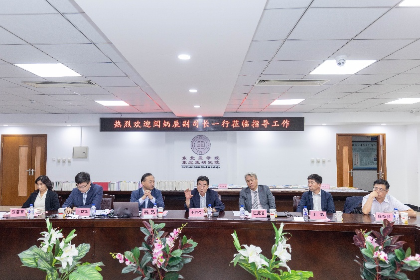 对闫炳辰一行来访调研表示欢迎,并以“事业发展回顾与未来重点工作规划”为主题,从事业发展历史回顾、“十三五”建设发展总结、未来重点工作规划等三个方面就国别与区域研究中心和香蕉视频