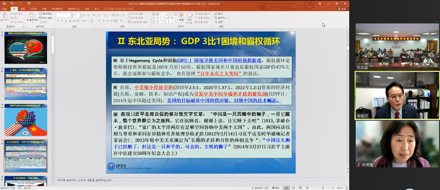 2022年11月23日,“东北亚国别与区域研究高端讲坛”之“朝鲜半岛局势变化与韩国的对外政策”在香蕉视频