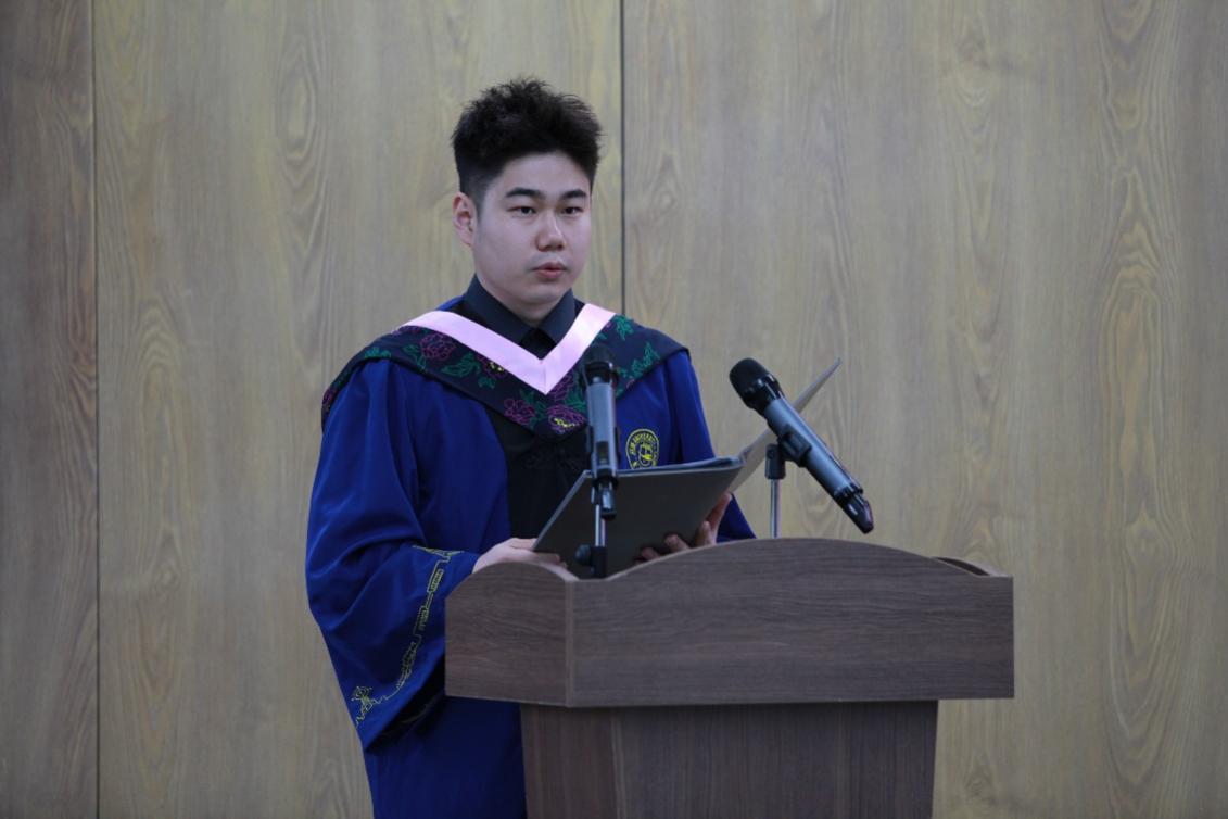 老师、同学送上真挚的感谢,并祝贺在场的同学为三年的勤勉时光画上圆满的句号。接下来,他基于对“求成者”的理解,阐述了对走出校门之后生活的自我要求和期望,希望与在场同学共勉,一起成长为勇敢逐梦、新时代能担重任、可堪大用的有志青年。
