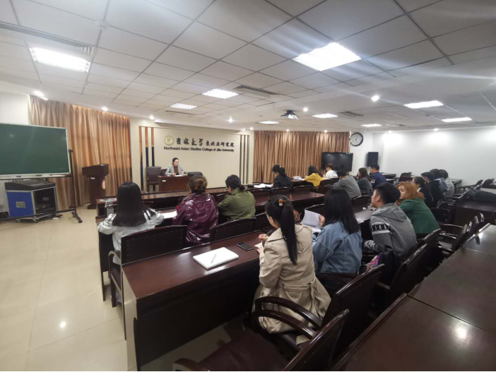 卓越计划韩国研究项目行前培训第四讲在东荣大厦404室举行。金香丹老师和张慧智老师为大家详细讲解了韩国的历史、礼仪、文化、传统习俗等方面内容。计划赴韩参与本次韩国研究项目的二十余名师生参加了培训。