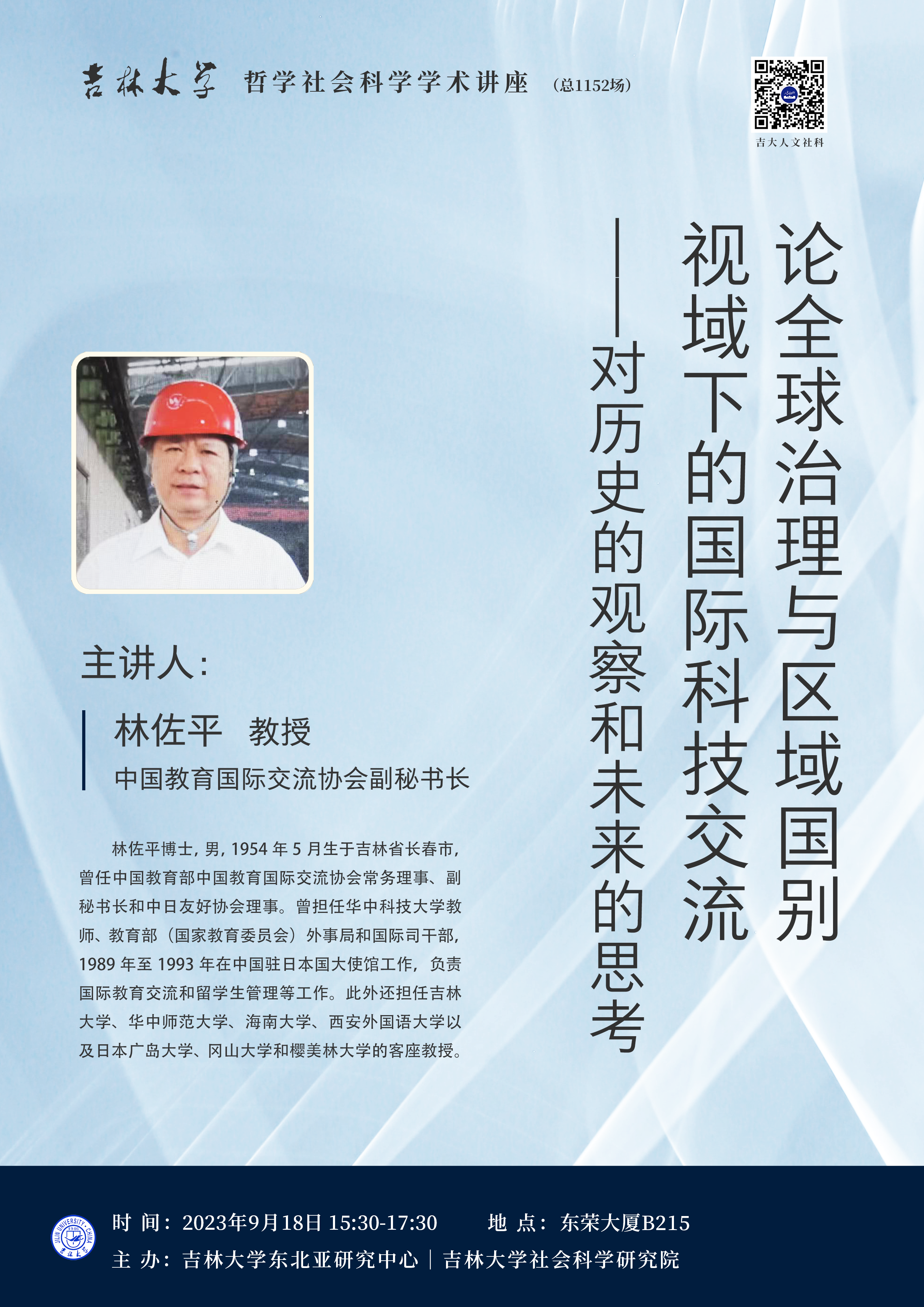 学术预告:香蕉视频 哲学社会科学学术讲座——论全球治理与区域国别视域下的国际科技交流